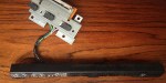 Sitting near the right side hinge and working with the damper arm and a large spring, the friction plate provides the dampened opening of the large metal lid.